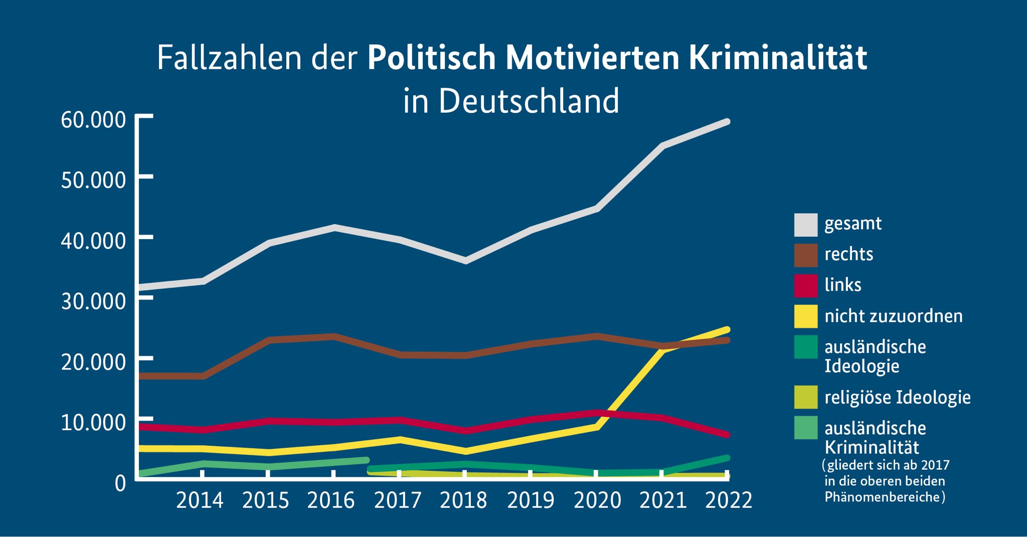 Am 9. Mai 2023 veröffentlichten das Bundeskriminalamt und das Bundesinnenministerium Zahlen zur politisch motivierten Kriminalität des Jahres 2022. Die Zahl der politisch motivierten Straftaten hat sich erneut deutlich erhöht. Sie ist um über sieben Prozent auf 58.916 Delikte angestiegen und hat somit einen neuen Höchststand politisch motivierter Kriminalität erreicht.  Gleichzeitig bestätigt ein Anstieg der rechtsmotivierten [...]